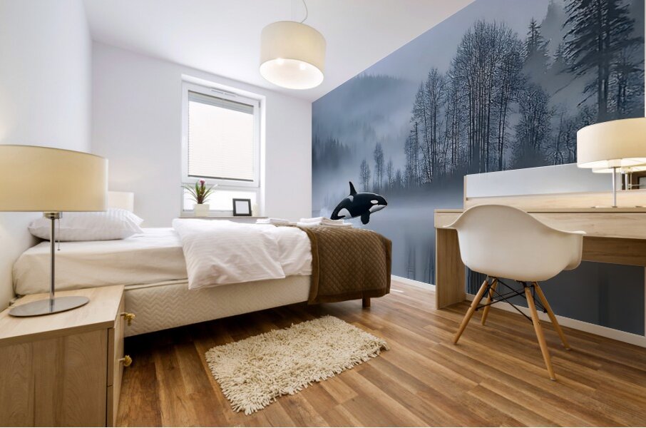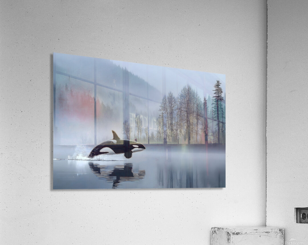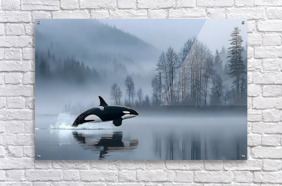 Get this artwork "Whispers of the Sea – Orca in the Mist Print" in a framed print.