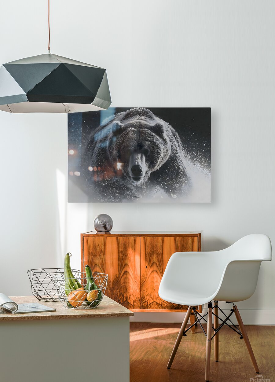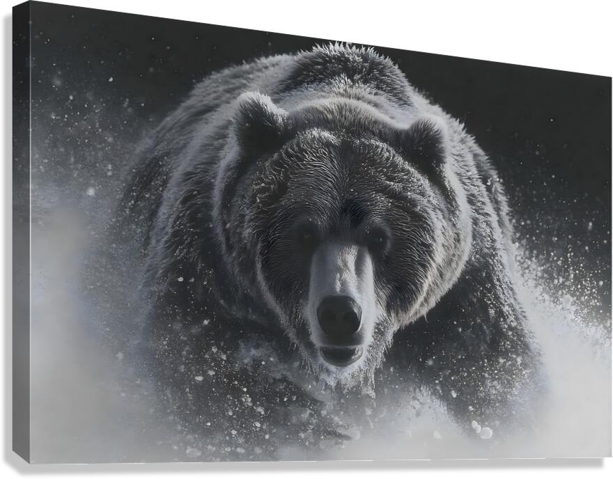 Thunder in White – Bear in the Snow Print captures an unstoppable burst of nature’s strength — a grizzly bear charging through snow and storm. T...[+]