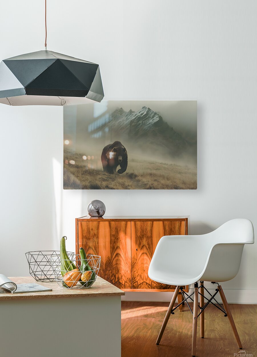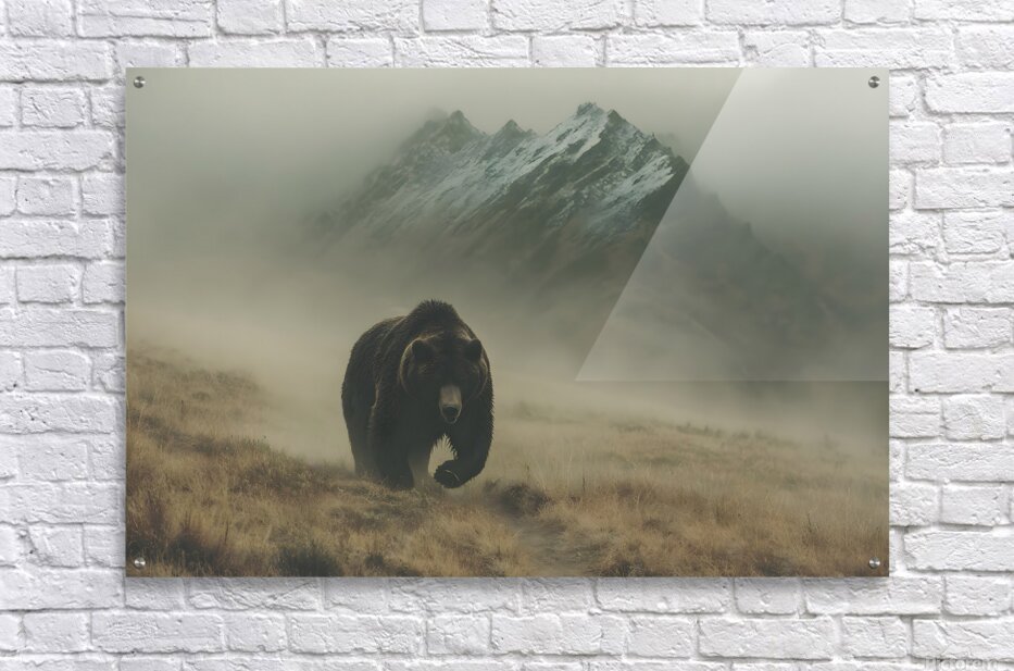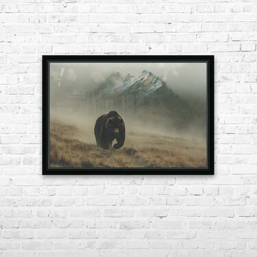 Spirit of the North – Grizzly in the Mist Print captures the awe of raw wilderness. A powerful grizzly bear strides through a mountain fog, embodyin...[+]
