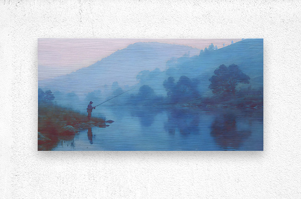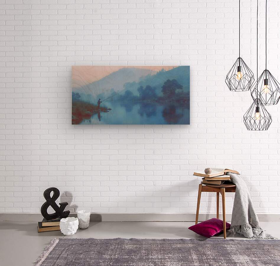 Morning Stillness – Misty Lake Fishing Print  Wood print