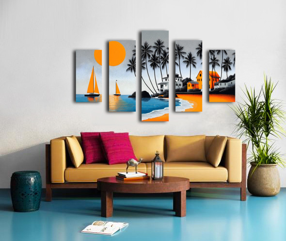 Orange Sun Harbor - Tropical Modern Print Canvas print
