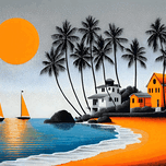 ABOUT THIS ARTWORK: ORANGE SUN HARBOR - TROPICAL MODERN PRINT