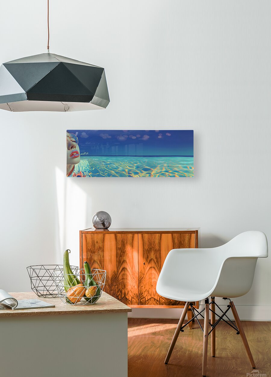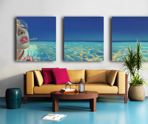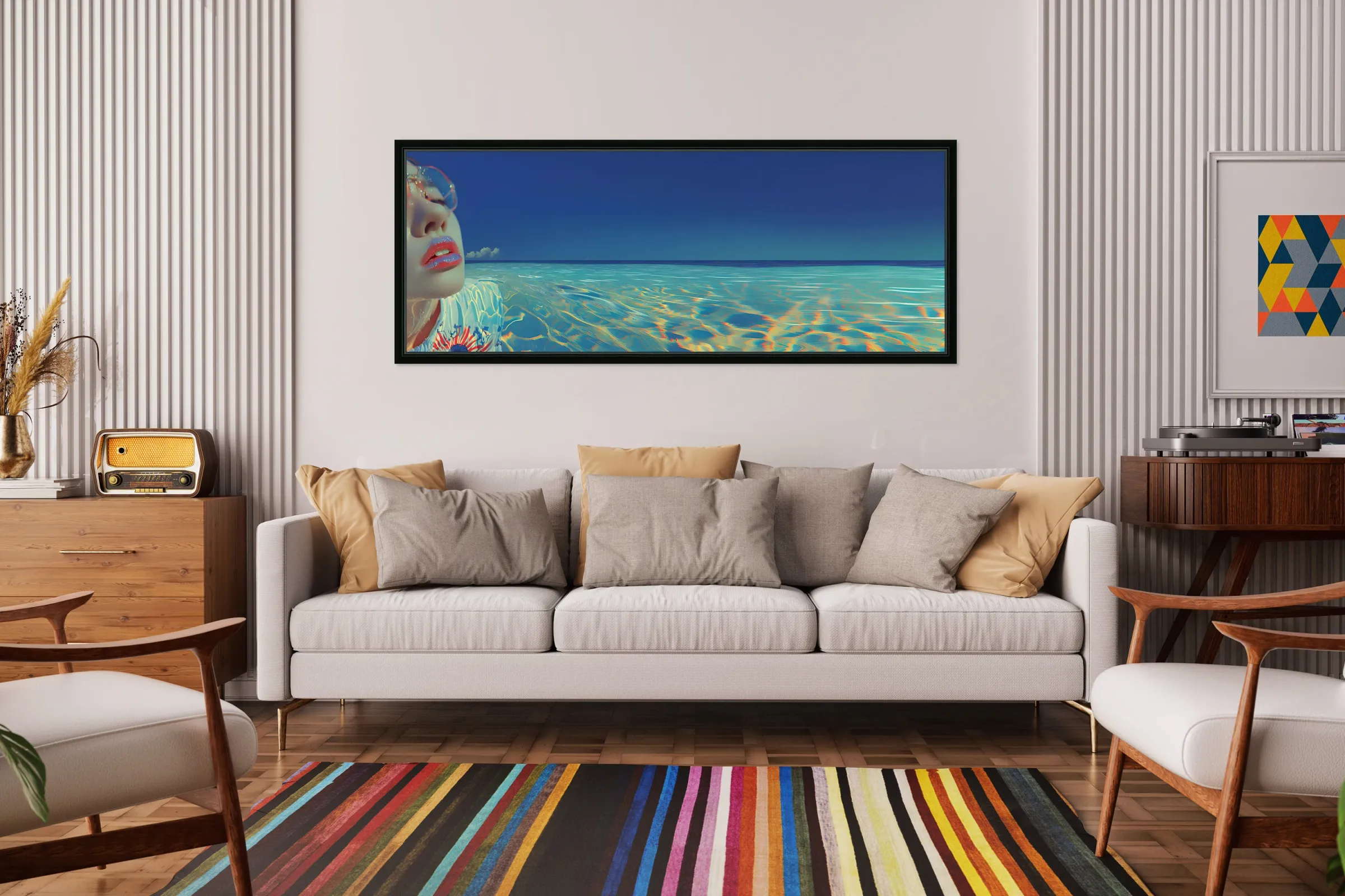 Tropical Horizon – Ocean Muse Print is one long exhale in blue. Glassy turquoise water stretches to a razor-thin horizon while a sun-lit face enters from the left, lips glossed in coral and sunglasses catching the same ripples that dance across the surface. It’s part fashion, part daydream—built for people who count down to their next beach trip and mentally live in that first step into warm, clear water. This artwork is available as a giclée canvas print, premium acrylic print, smooth white metal or brushed aluminum piece, and high-definition sublimatable metal that keeps the gradients clean and the reflections sharp. You can also choose a peel-and-stick mural to turn a wall into an endless shoreline, framed wall art for ready-to-hang coastal glamour, fine art paper prints for a softer, editorial feel, wood prints for organic warmth, multi-panel presentations that extend the horizon even farther, or puzzle prints for those who want to build their escape scene by scene. Curated by Savage Art Prints.