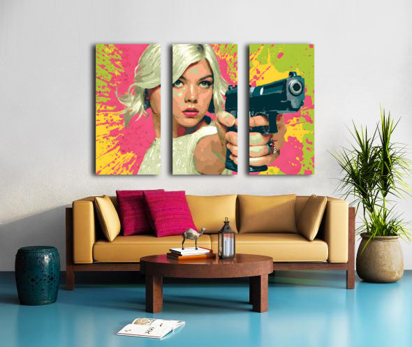 Neon Trigger – Pop Noir Print feels like a movie freeze-frame with the saturation turned all the way up. A platinum-haired woman aims straight out of the frame, jaw set and eyes locked, while a blast of pink, yellow, and green splatter explodes behind her. It’s pulp energy meets pop palette—more graphic novel panel than real-world moment—perfect for game rooms, home theaters, and anyone who grew up on action flicks and grindhouse posters. This artwork is available as a giclée canvas print, premium acrylic print, smooth white metal or brushed aluminum piece, and high-definition sublimatable metal that keeps the neon tones loud and the details sharp. You can also choose a peel-and-stick mural for full-wall cinema impact, framed wall art for instant pop-noir attitude, fine art paper prints for a softer, poster-like finish, wood prints that add warmth to the chaos, multi-panel presentations that stretch the blast across wider spaces, or puzzle prints for those who want to piece their anti-heroine together frame by frame. Curated by Savage Art Prints.
