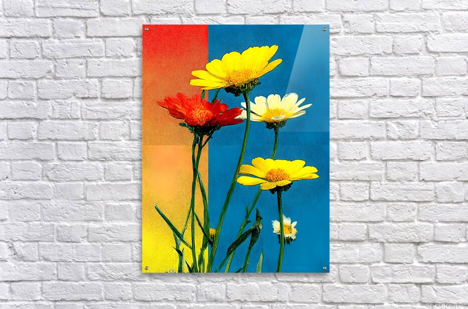 Rainbow Bloom – Color Block Daisy Print explodes with giant red, yellow, and white daisies against a striking vertical color-block background—an instant mood-lifter for kitchens, kids’ rooms, or any spot needing bold, happy vibes. This artwork is available as a giclée canvas print for rich color and painterly depth, a premium acrylic print for a sleek, gallery-style sheen, and smooth white metal or brushed aluminum pieces for a contemporary edge. You can also choose high-definition sublimatable metal, peel-and-stick murals, framed options, fine art paper, warm wood prints, multi-panel layouts, or puzzle prints. Curated by Savage Art Prints.