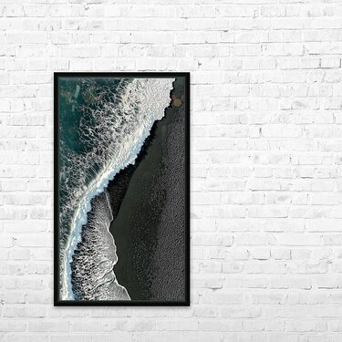 Black Sand Surge – Dramatic Aerial Beach Print Picture Frame Printing