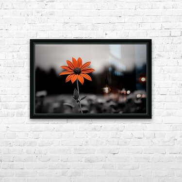 Solitary Flame glows with quiet defiance — a single orange daisy illuminated against blackness. The composition conveys individuality, strength, and hope. Perfect for bedrooms, offices, or meditation spaces craving warmth within simplicity. Printed with archival inks on museum-grade substrates. Curated by Savage Art Prints.