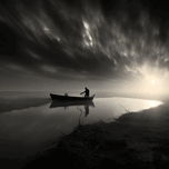 The Fisherman’s Prayer captures a lone boat adrift beneath a vast sky — a timeless symbol of faith, solitude, and survival. The monochrome palette...[+]