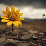 Golden Resolve radiates quiet determination — a sunflower blooming strong against the muted tones of a weathered landscape. Sepia light softens the ...[+]