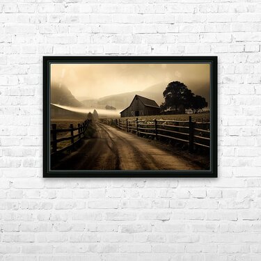 Country Road Reverie – Vintage Sepia Landscape Print Picture Frame Printing