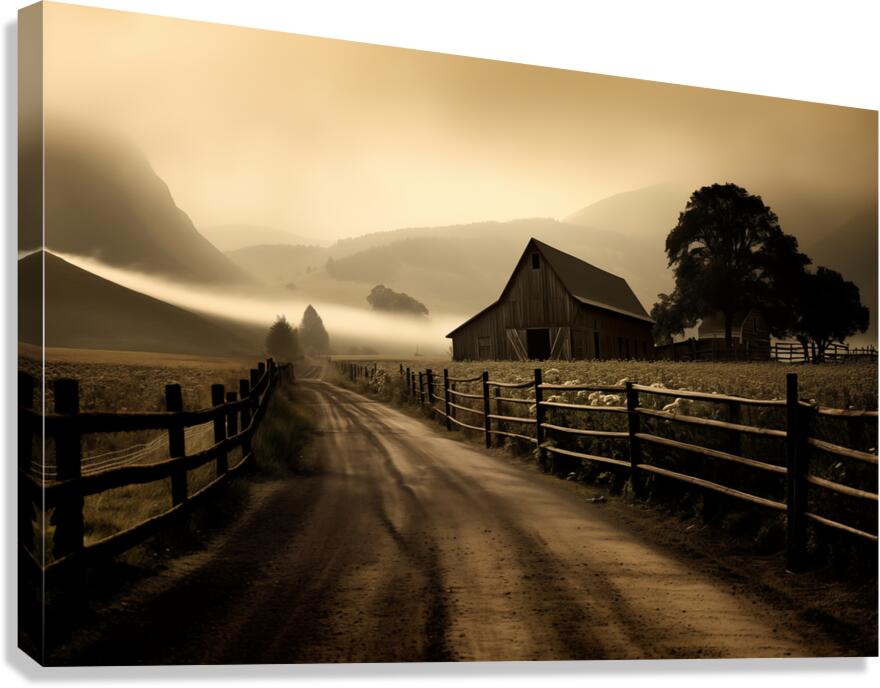 Country Road Reverie – Vintage Sepia Landscape Print Canvas print
