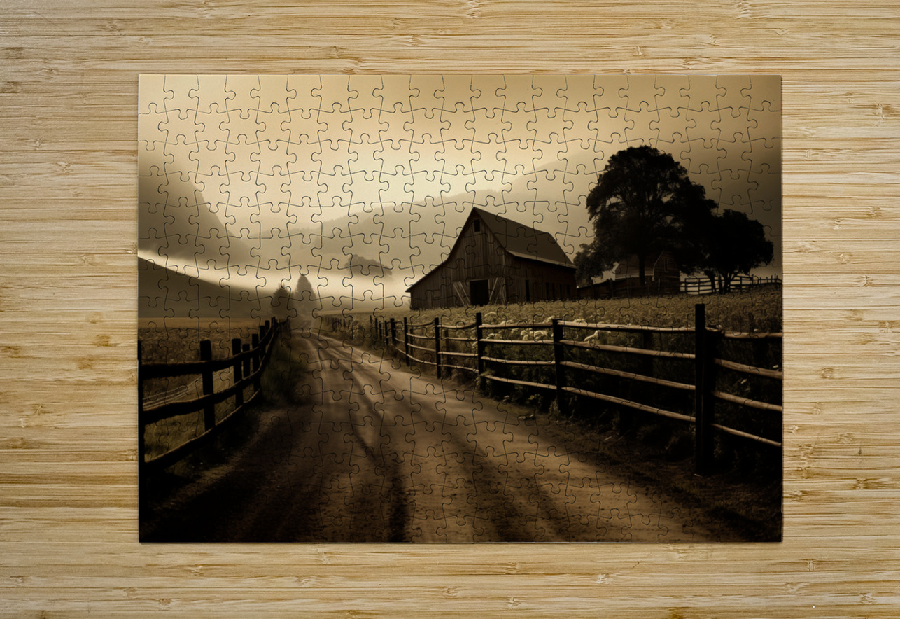 Country Road Reverie – Vintage Sepia Landscape Print Savage Art Prints Puzzle printing