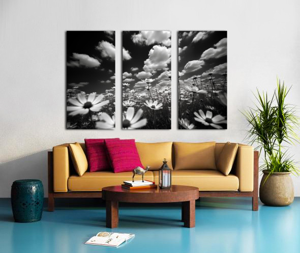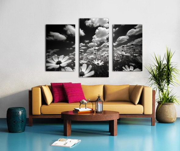 Whispers of the Sky – Monochrome Daisy Field Print Canvas print