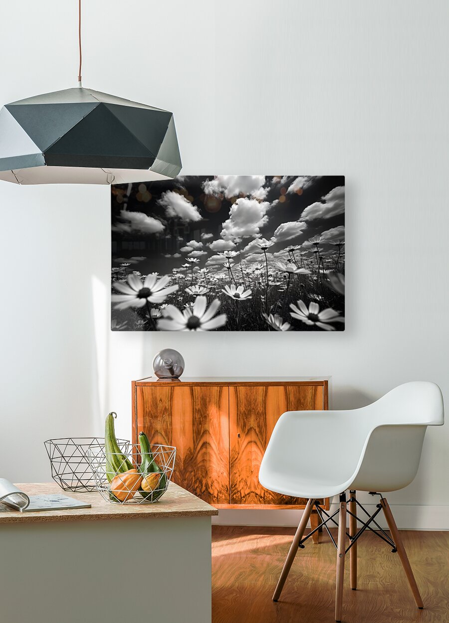 Whispers of the Sky captures a sweeping daisy field beneath a sky alive with movement. Billowing clouds and soft petals create a delicate balance between power and stillness, transforming a simple meadow into a moment suspended in time. The monochrome treatment emphasizes light and form, offering a timeless contrast perfect for modern or rustic interiors alike. Ideal for living rooms, hallways, or minimalist offices, this piece adds depth and calm to any space. Available on canvas for matte organic texture, HD metal for crisp tonal clarity, acrylic for modern gloss and depth, or framed fine-art paper for a refined finish. Printed with archival inks on premium materials. Curated by Savage Art Prints.