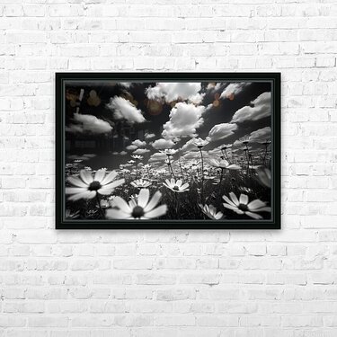 Whispers of the Sky – Monochrome Daisy Field Print Picture Frame Printing