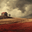 A weathered barn crowns rolling golden hills while thunderheads press low over a ribbon of fence. In the foreground, a crimson field glows like embers...[+]