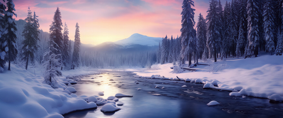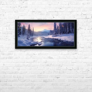 Lavender sky fades to blush as a quiet river threads through snow-laden pines. “Solstice River” brings winter’s hush indoors—a peaceful, lumin...[+]