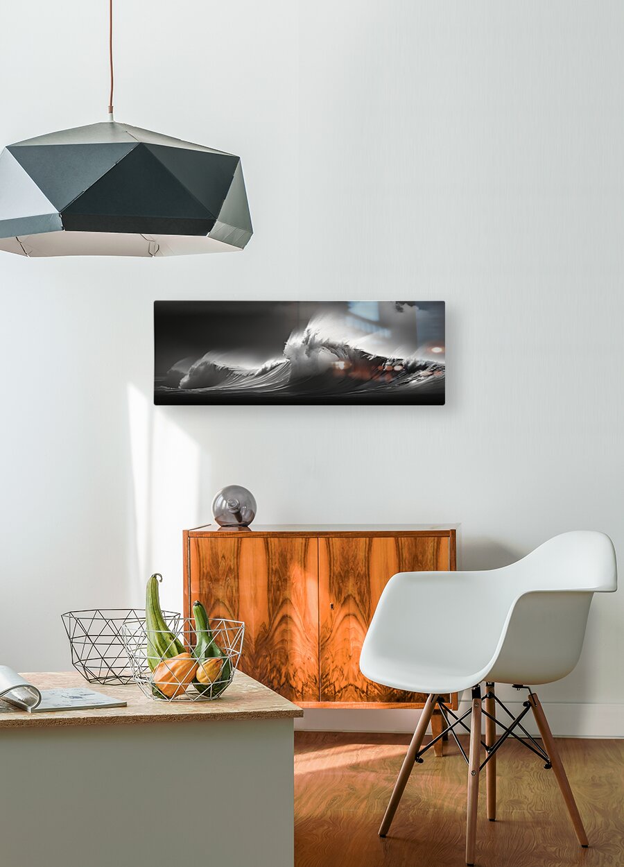 Feathered spray and polished shadows sculpt a cresting wave into pure monochrome elegance. “Silver Breaker” strips the sea to light and form, delivering a calm yet powerful focal point. Its panoramic ratio expands narrow walls and anchors long mantels or consoles. Select canvas for matte, gallery texture; HD metal for high-contrast brilliance; acrylic for glass-clear depth; or framed fine-art paper for a sophisticated, low-glare finish. Archival inks and premium materials in custom sizes. Curated by Savage Art Prints.