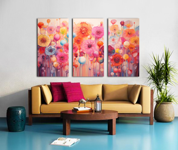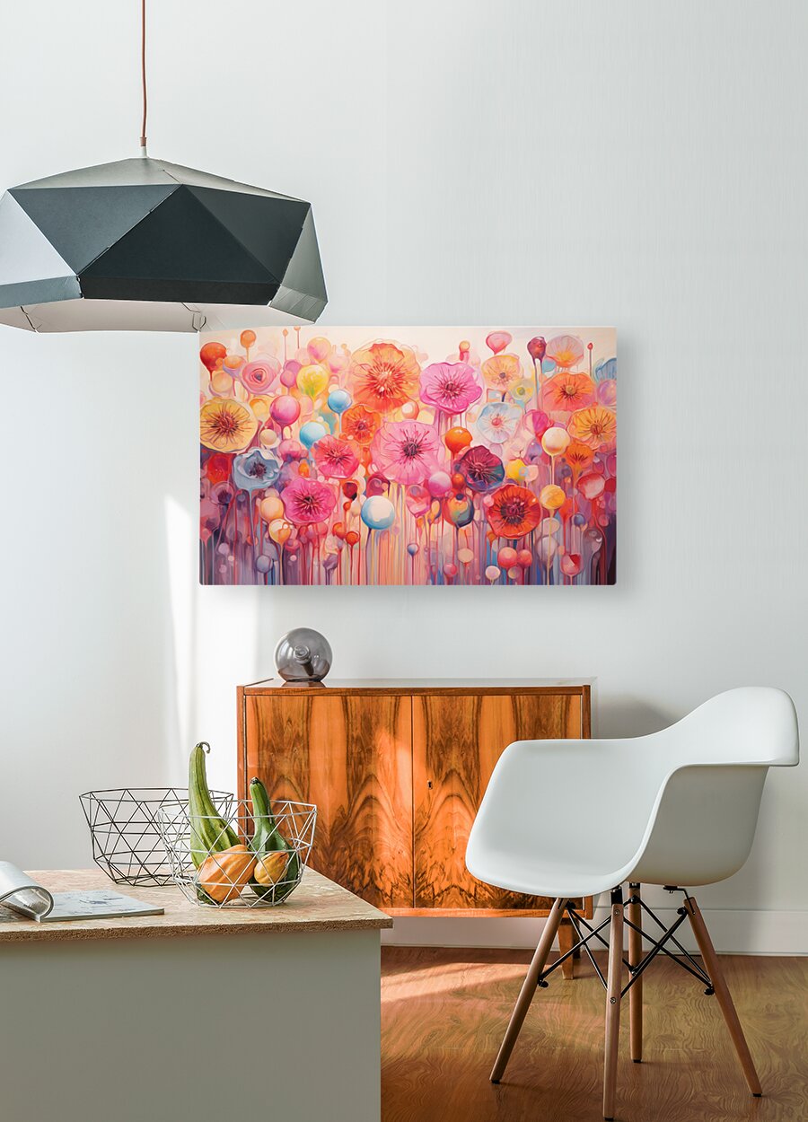 Petal-like shapes bloom in candy pinks, tangerine, coral, and sky blue, drifting upward like balloons in a festival of color. “Bloom Voltage” is a joyful abstract floral—no stems to fuss over, just buoyant blossoms and soft glazing that brighten any space. Hang it over a sofa, in a dining nook, or to enliven a nursery or studio—the palette plays beautifully with warm woods and neutral walls. Choose canvas for a matte, painterly feel; HD metal for razor-sharp detail and luminous gloss; acrylic for glass-clear depth; or framed fine-art paper for a refined, low-glare presentation. Printed with archival inks on premium substrates and available in custom sizes for a perfect fit. Curated by Savage Art Prints.