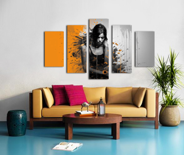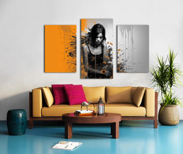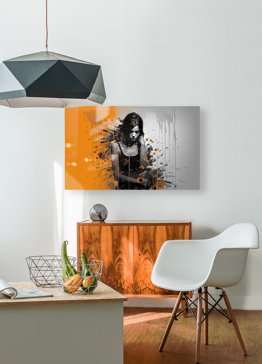 A grayscale figure emerges from a field of texture while a slab of ember-orange cuts through the scene—pure tension, pure balance. “Contrast” blends portrait realism with splattered, street-art energy, giving you a piece that reads crisp from across the room and reveals raw, tactile details up close. The tight black-and-white palette keeps interiors calm; the orange strike supplies the spark. Perfect for lofts, creative studios, and media rooms. Choose canvas for soft, matte depth; HD metal for glossy, ultra-vivid punch; acrylic for glass-clear dimension; or framed fine-art paper for a refined, low-glare finish. Printed with archival inks on premium substrates, available in custom sizes and ready to hang. Curated by Savage Art Prints.