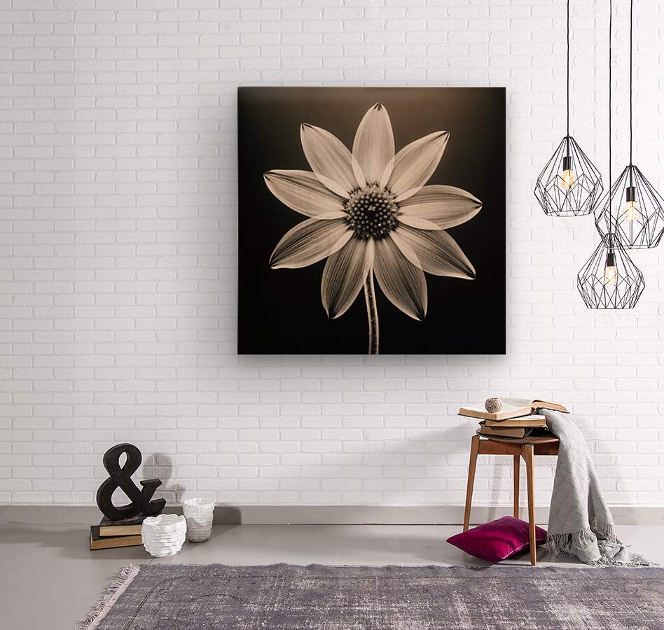 Sumptuous – Soft-Glow Daisy Monochrome Art Print  Wood print