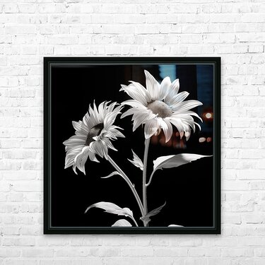 Ineffable – Black & White Twin Sunflower Art Print Picture Frame Printing