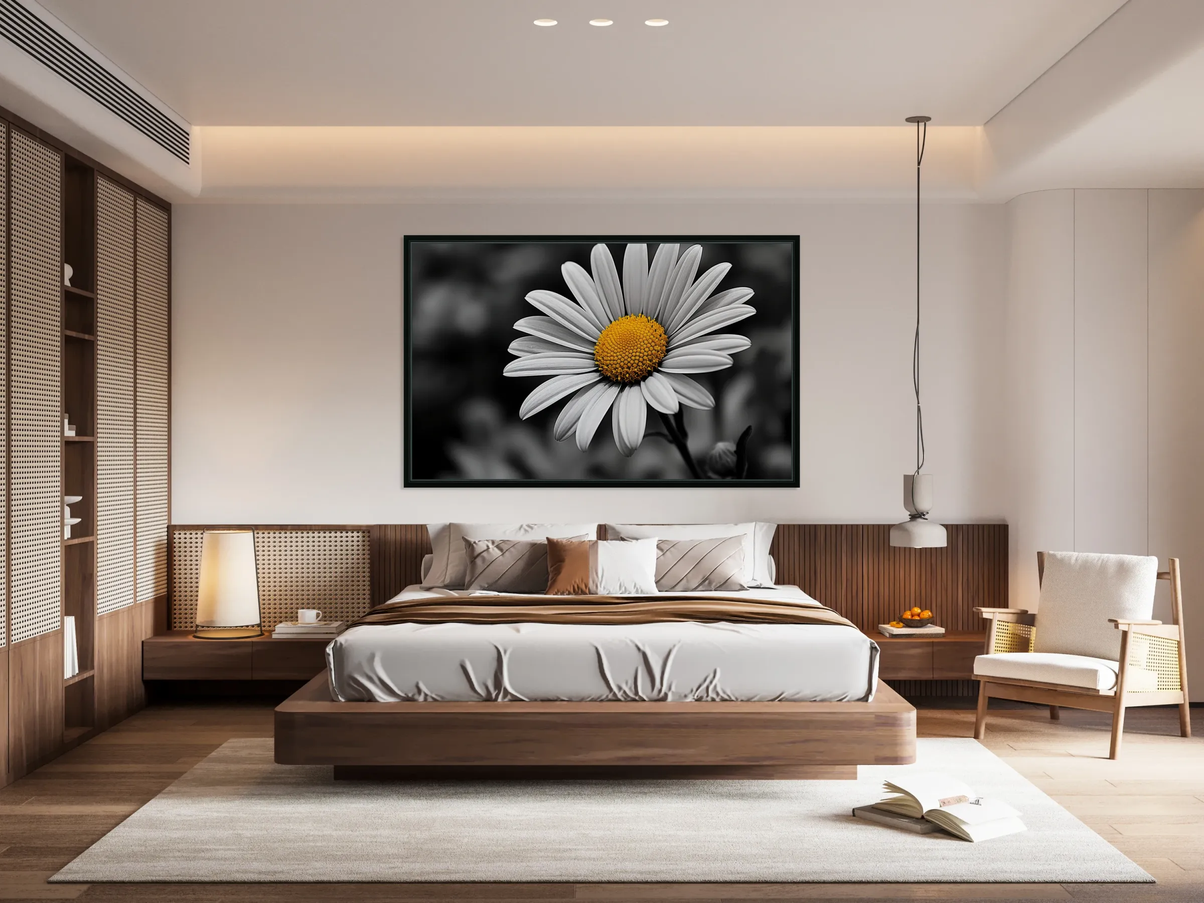 A single daisy catches the light—petals edged with dew, center rich with texture—framed in soothing grayscale. “Serendipitous” adds a small moment of wonder to bedrooms, entries, and reading nooks. It layers easily with linen, pale woods, and brushed metals. Available as canvas (matte tactility), HD metal (glossy punch), acrylic (glass-clear depth), or framed fine-art paper (low-glare classic). Printed with archival inks on premium materials in custom sizes. Curated by Savage Art Prints.