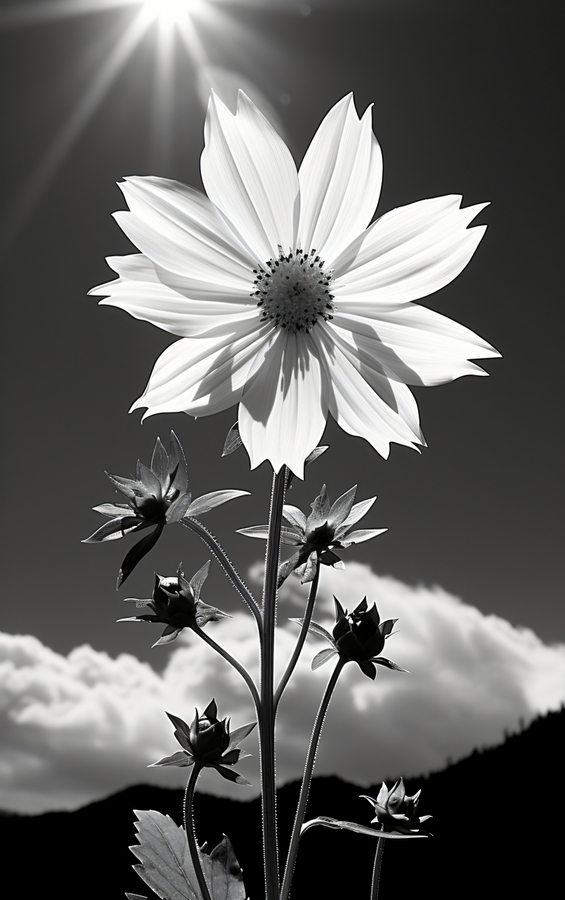 A single daisy stands tall against a soft cloudbank—clean lines, luminous petals, and space to breathe. “Posture” is quiet power, perfect for be...[+]