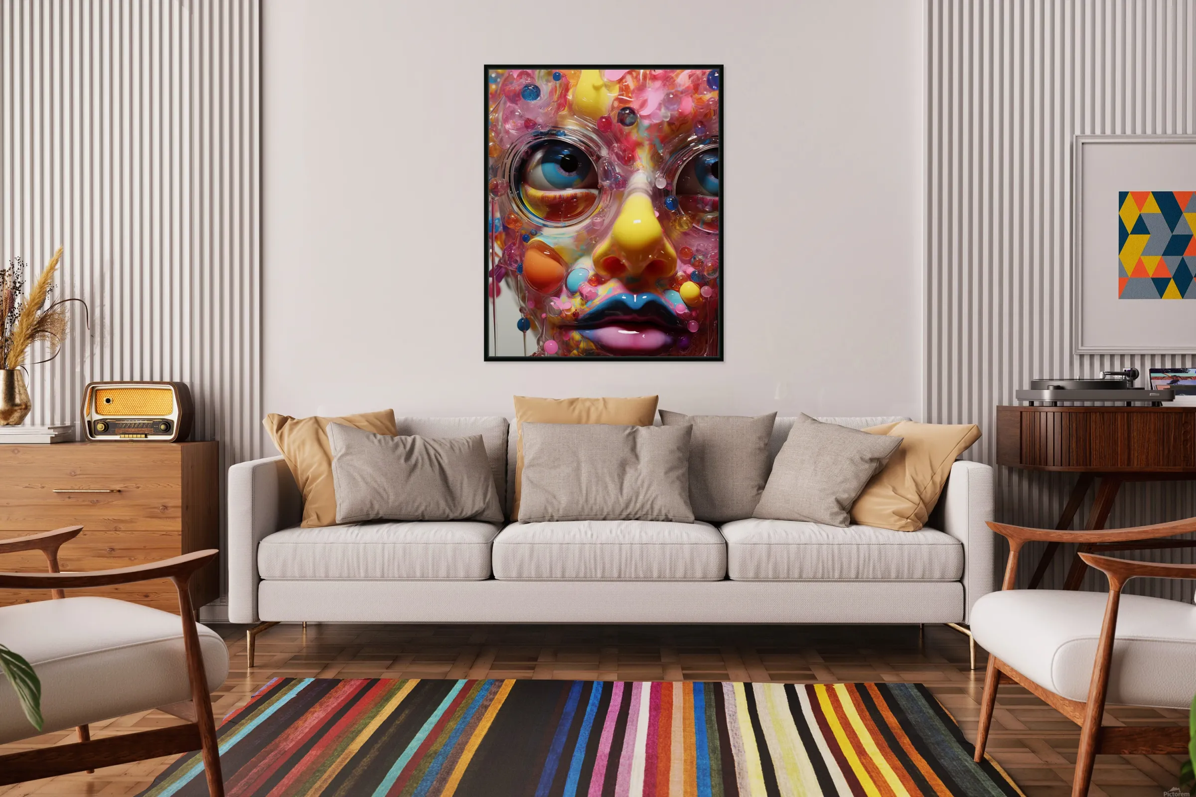 Color runs hot and patterns collide—chaos sharpened into a grin. “Insanity” is an unapologetic showstopper for creative spaces and high-energy r...[+]