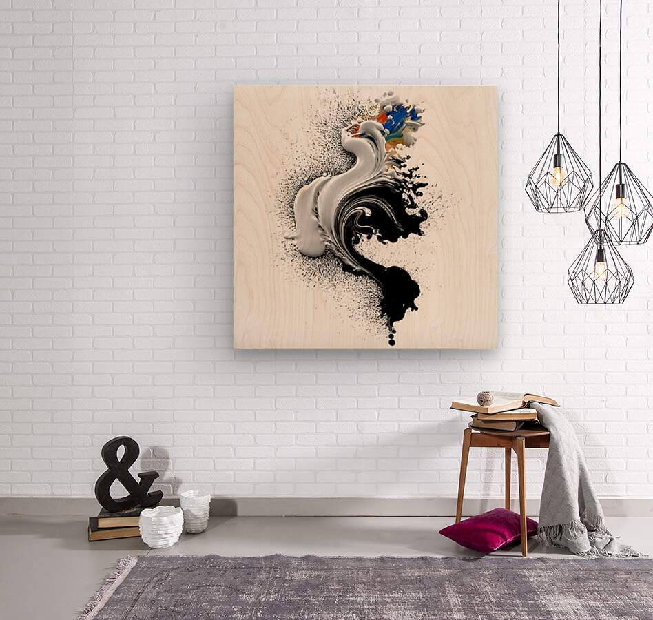 Ink Seraph – Monochrome Plume with Color Spark Print Impression sur bois
