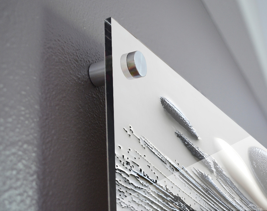 Impression sur acrylique avec entretoises ( cylindres métalliques )