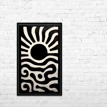 Heatwave blends energy and balance through motion. The sun’s arcs and the flowing waves below are reduced to pure line — a study in rhythm and simplicity. This minimal black and white print radiates warmth and clarity, perfect for modern, Scandinavian, or industrial interiors. Curated by Savage Art Prints.