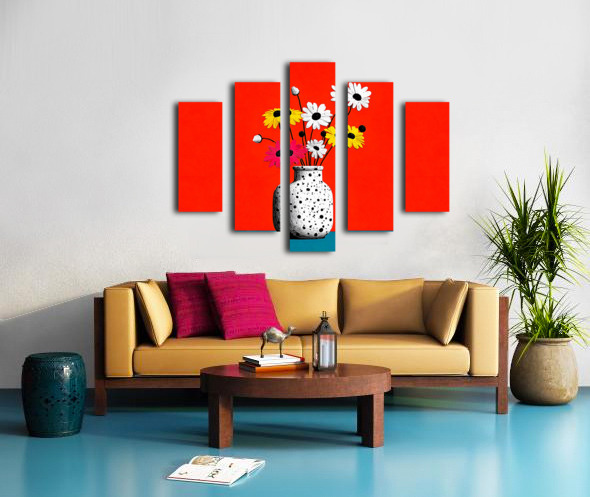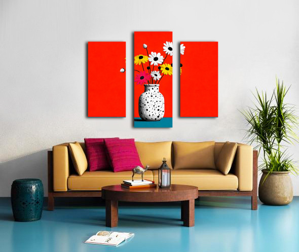 Polka Bloom – Retro Daisy Vase Print Impression sur toile