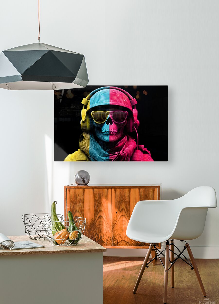 NPC – Non Player Character reimagines digital identity in a vivid cyberpunk palette. Split into electric pink, blue, and yellow tones, this skeletal figure fuses gaming culture with futuristic rebellion. Wireframe contours and neon symmetry balance human fragility and digital immortality, making it a statement piece for gamers, collectors, and lovers of modern edge. This artwork is available as a giclée canvas print, premium acrylic print, smooth white metal or brushed aluminum piece, and high-definition sublimatable metal panel for maximum color pop and durability. You can also choose a peel-and-stick mural for large-scale installs, framed wall art for a ready-to-hang finish, fine art paper options (including rolled satin, rolled canvas, and rolled matte art paper), warm wood prints, multi-panel presentations, or even puzzle prints for a tactile, interactive experience. Curated by Savage Art Prints.