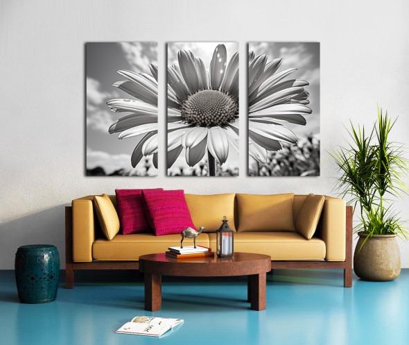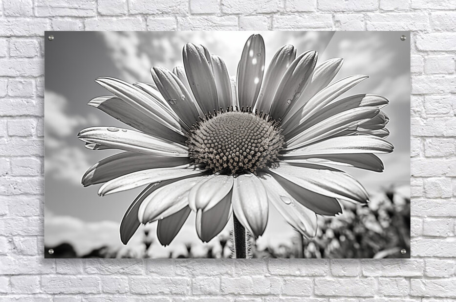 Sky Whisper – Monochrome Daisy Under Clouds Impression sur toile
