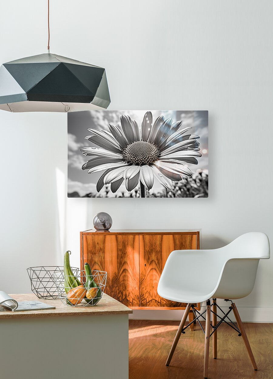Sky Whisper captures a daisy leaning toward drifting clouds, balancing delicacy and strength. Its monochrome palette turns nature into a dreamscape — soft, reflective, and eternal. Perfect for modern, rustic, or Scandinavian-style spaces. Printed with archival inks on museum-quality materials. Curated by Savage Art Prints.