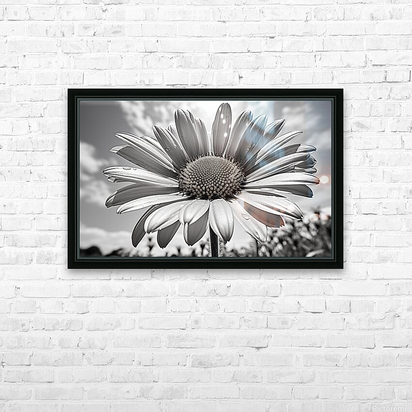 Pour obtenir "Sky Whisper – Monochrome Daisy Under Clouds" dans une impression encadrée.