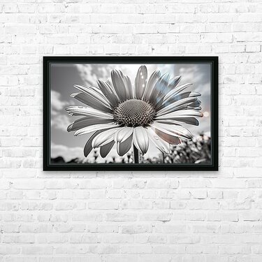 Sky Whisper captures a daisy leaning toward drifting clouds, balancing delicacy and strength. Its monochrome palette turns nature into a dreamscape ...[+]