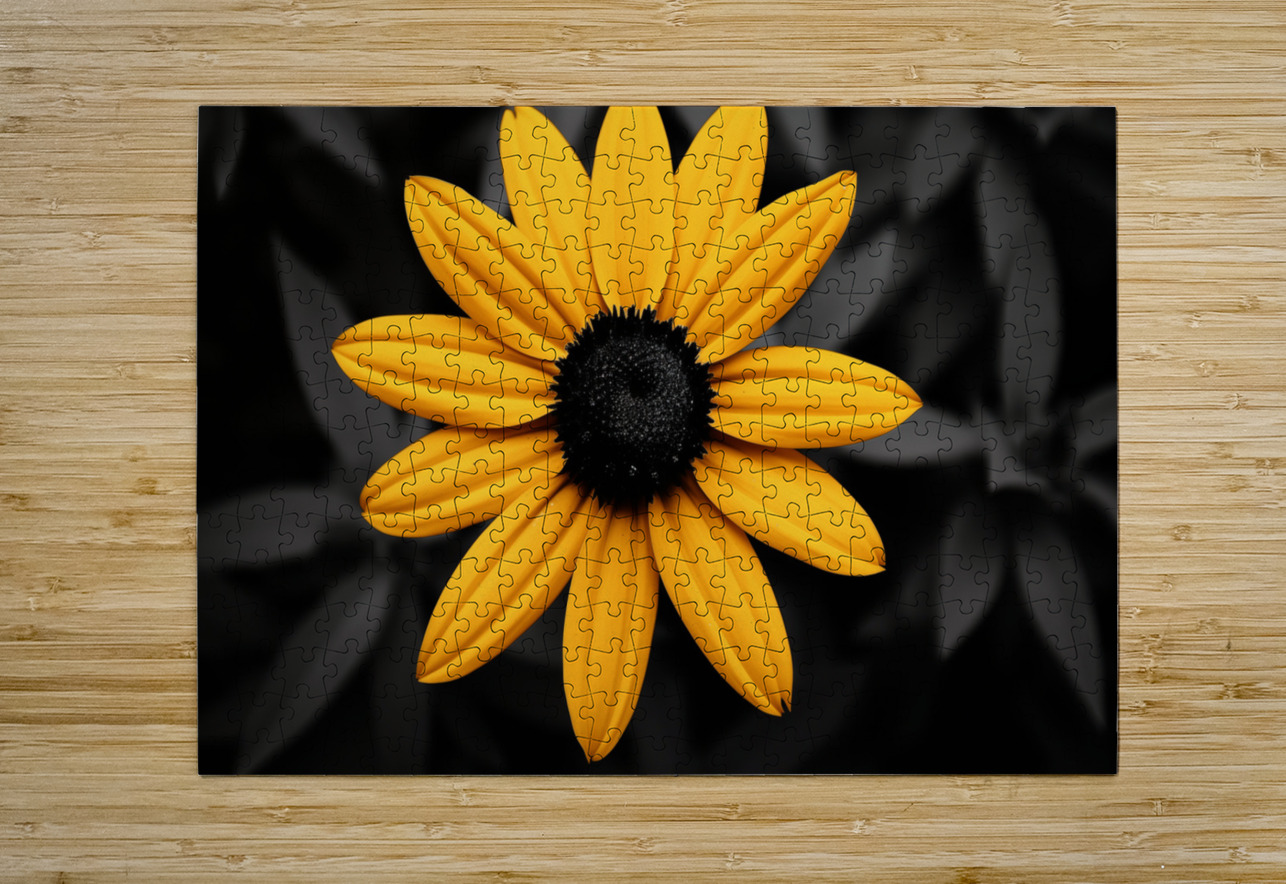 Lone Glow – Yellow Sunflower on Black Print Savage Art Prints Puzzle