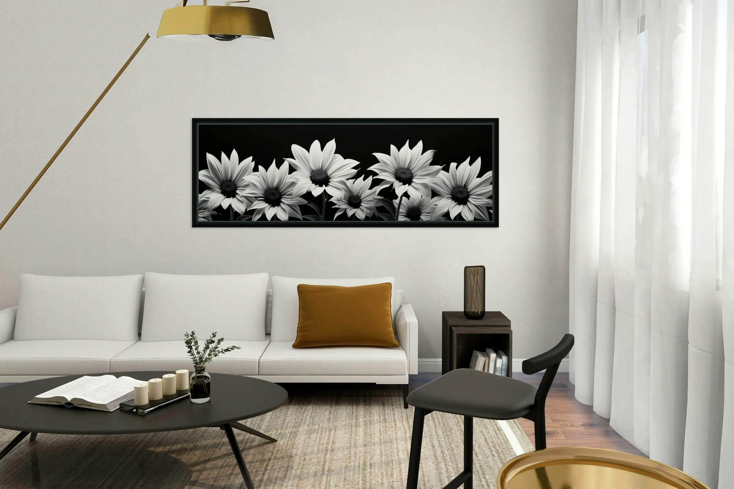 Crisp monochrome leaves set off a tidy row of bright sunflower heads for a look that’s clean and cheerful. “Garden Row” brings order and optimism to kitchens, hallways, and mudrooms—anywhere a touch of nature feels right. Choose canvas for matte warmth; HD metal for cool gloss and sharp contrast; acrylic for a sleek, modern finish; or framed fine-art paper for a timeless, low-glare presentation. Produced with archival inks on premium materials and offered in custom sizes. Curated by Savage Art Prints.